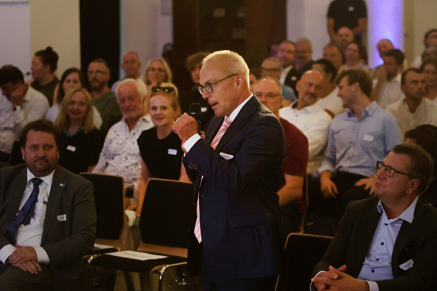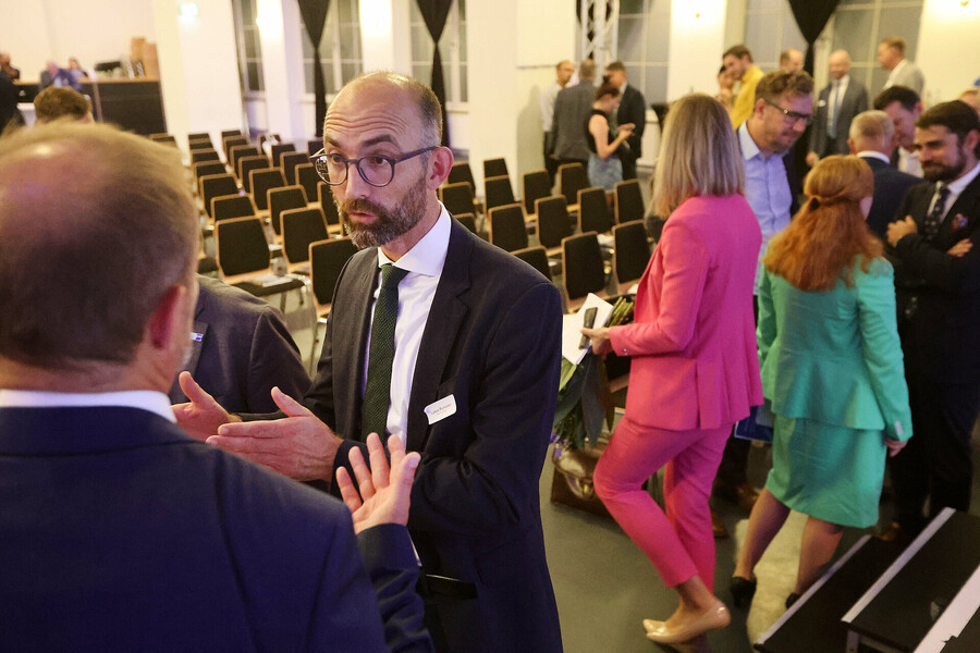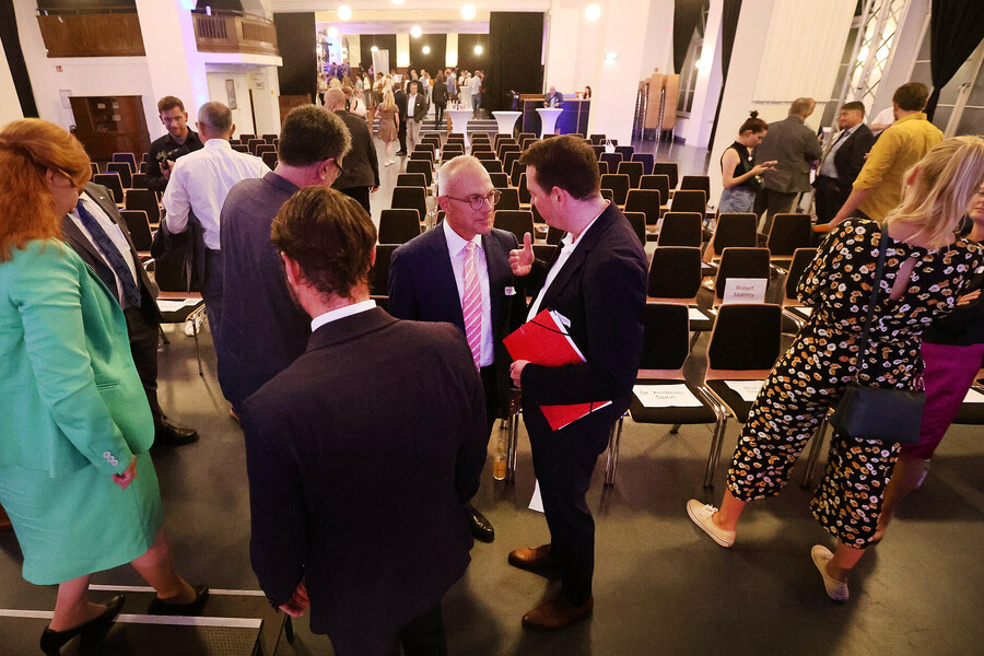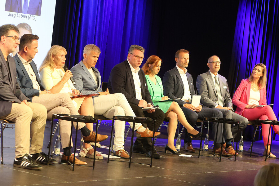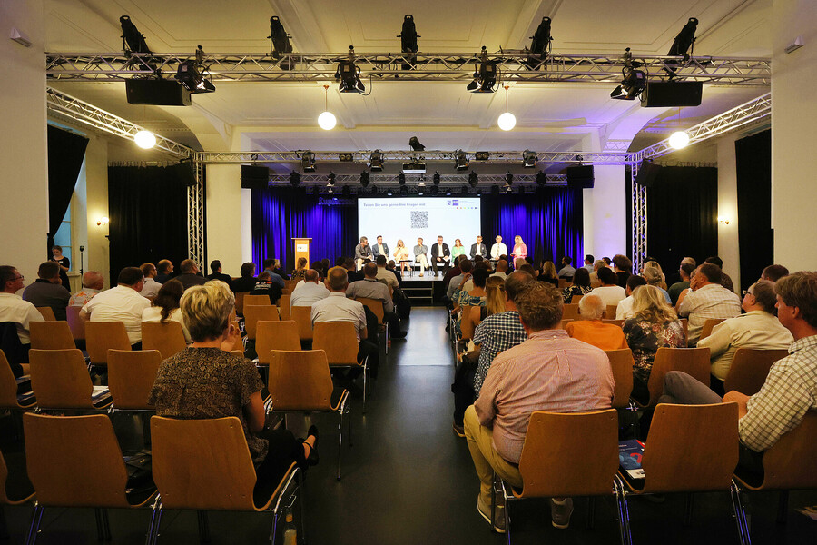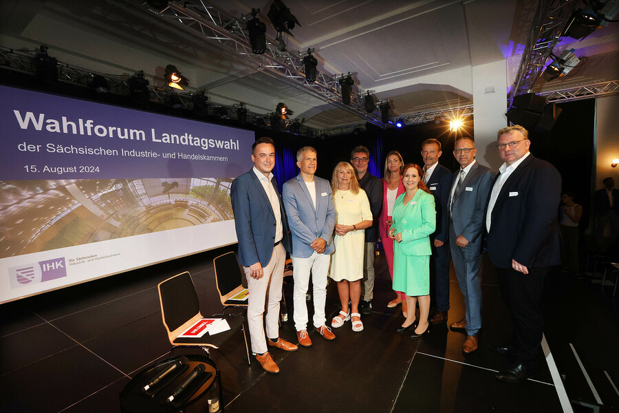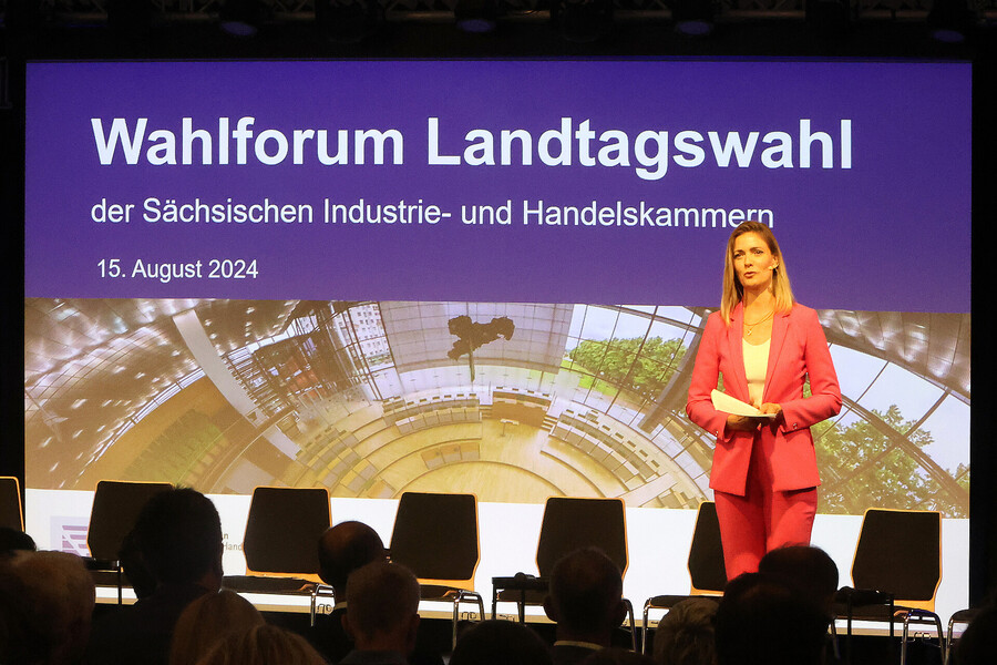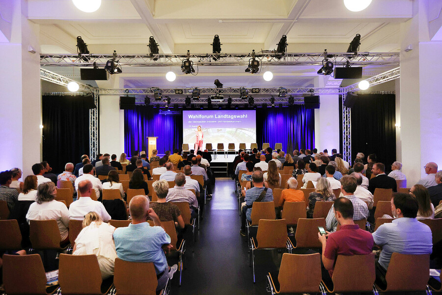 Hier sehen Sie die Bilder vom Wahlforum der Sächsischen IHKs zur Landtagswahl 2024, aufgenommen am 15. August im Kupfersaal an der Kupfergasse 2 in Leipzig. Die IHK zu Leipzig stellt diese Fotos für private Verwendung oder im Rahmen einer redaktionellen Berichterstattung mit Nennung der Quelle zur Verfügung.
