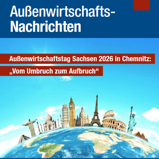 Die "Außenwirtschaftsnachrichten" sind ein gemeinsamer Service der drei Sächsischen Industrie- und Handelskammern sowie der Wirtschaftsförderung Sachsen GmbH, um Exportunternehmen über Änderungen und Neuerungen im Außenwirtschaftsverkehr zu informieren, außenwirtschaftliche Veranstaltungen und Angebote bekannt zu machen und Fördermöglichkeiten vorzustellen.