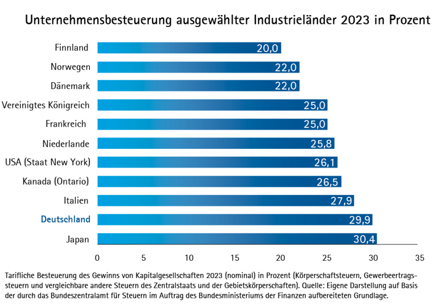 - Änderung des Körperschaftsteuergesetzes (KStG): Senkung des Körperschaftsteuersatzes auf ein international wettbewerbsfähiges Niveau (Gesamtbelastung aus Körperschafts- und Gewerbesteuer max. 25 Prozent)