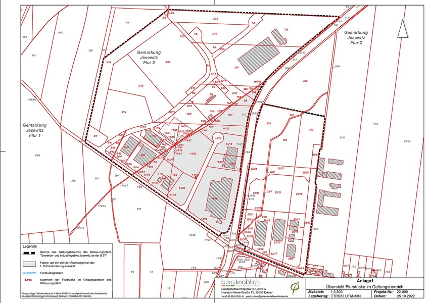 - Beschreibung: Zum Verkauf steht hier im Auftrag des Eigentümers eine ca. 2 ha große Gewerbefläche mit B-Plan der Gemeinde Jesewitz. GRZ 0,8 - TH 9m (Erh. auf 15 m).
