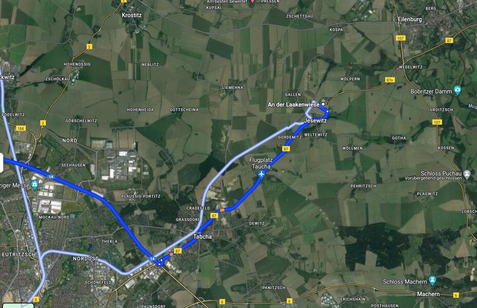 Die Anbindung an das Bundes- & Bundesautobahnnetz ist hervorragend. Die Stadt Leipzig ist ca. 15 km entfernt und schnell zu erreichen. Die A 9 ist 29 km , die A 14 ist 10 km, die A 38 ist 20 km und die B 87 ist 0,5 km entfernt. Ebenso sind der Flughafen Leipzig/Halle, das Porsche-Werk und das BMW-Werk sowie DHL zeitnah zu erreichen. - Fläche unbebaut (m2): 20.996