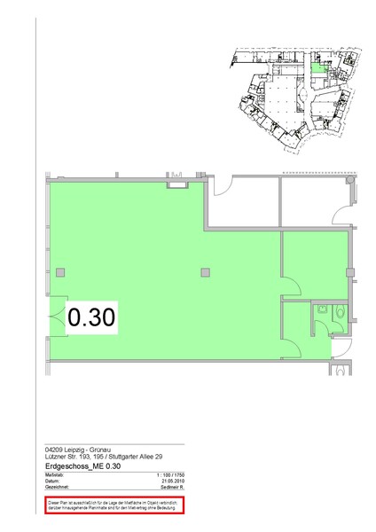 - Beschreibung: Das Ladengeschäft ME 0.30 befindet sich in direkter Lauflage in der Mall und hat eine große Schaufensterfront sowie eine doppelflügige Eingangstür. Ausgestattet ist diese mit einem durchgefärbten PVC-Boden und geweißten Wänden. Die Mieteinheit hat ein eigenes WC und eine kleine Teeküche. Ein gemeinschaftliches behinderten WC ist im Objekt vorhanden und befindet sich in unmittelbarer Nähe zur Ladenfläche.